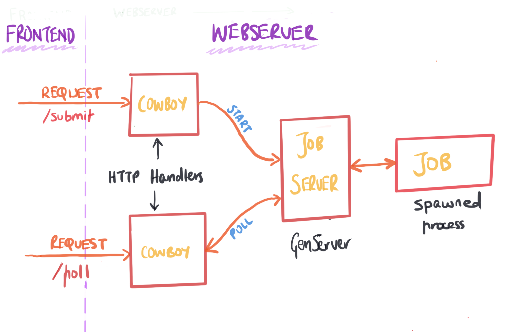 JobServermaintains the status of the running job function as internal state, and passes this state back to any/pollrequests that come in. - Once the job function is done, the