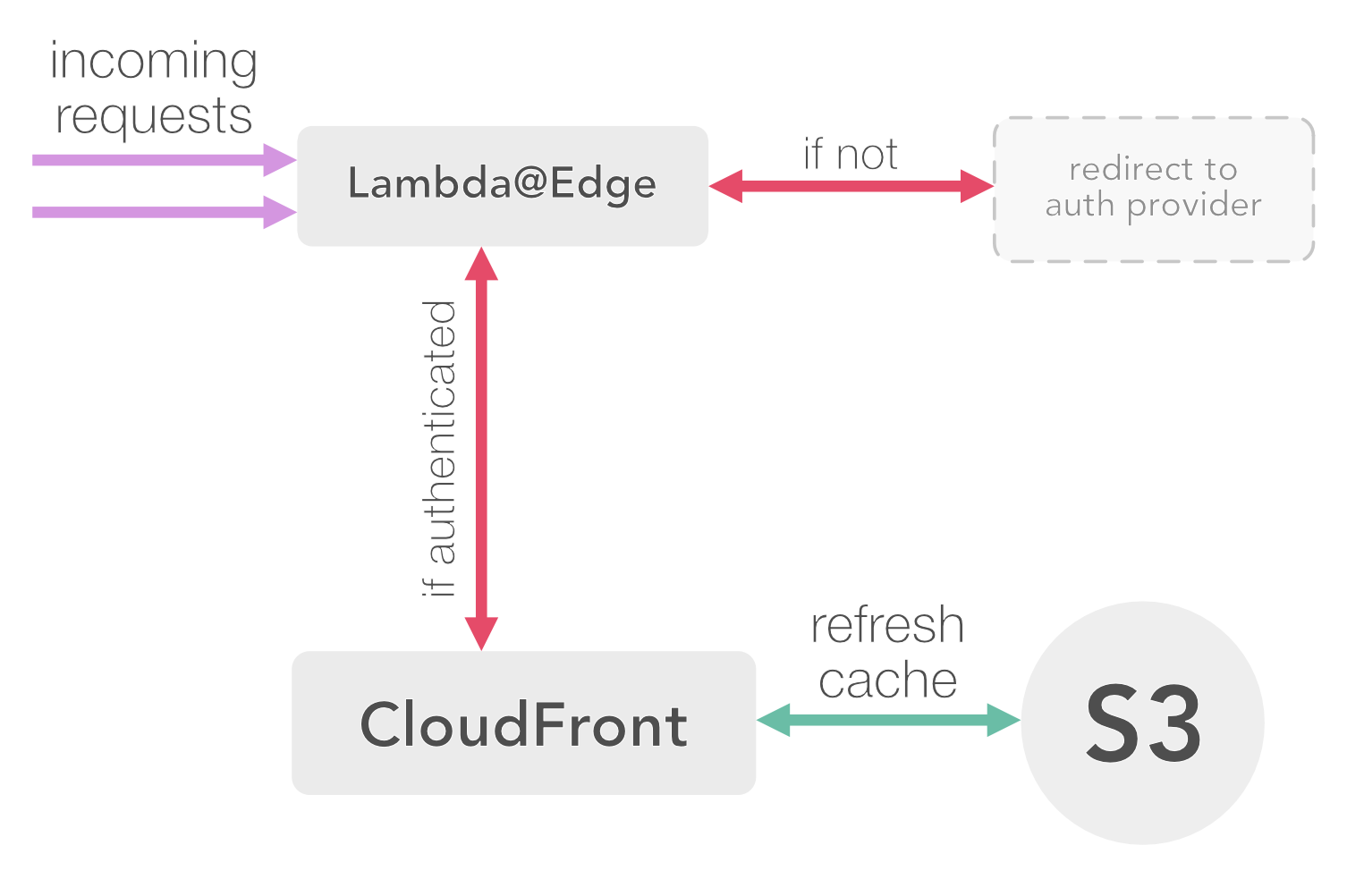 With a Lambda@Edge function acting as an auth layer, the system now looks like this: