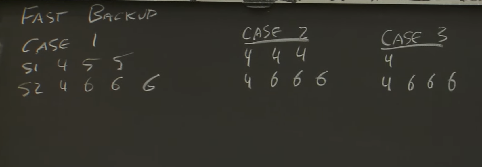 - Case 3: S1 has nothing at the given index, so S2 backs up to S1’s final index.
