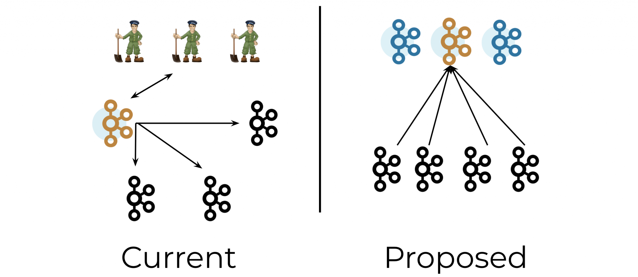 • Kafka is removing its Zookeeper dependency, switching (optionally) to storing metadata internally, in a Kafka partition.