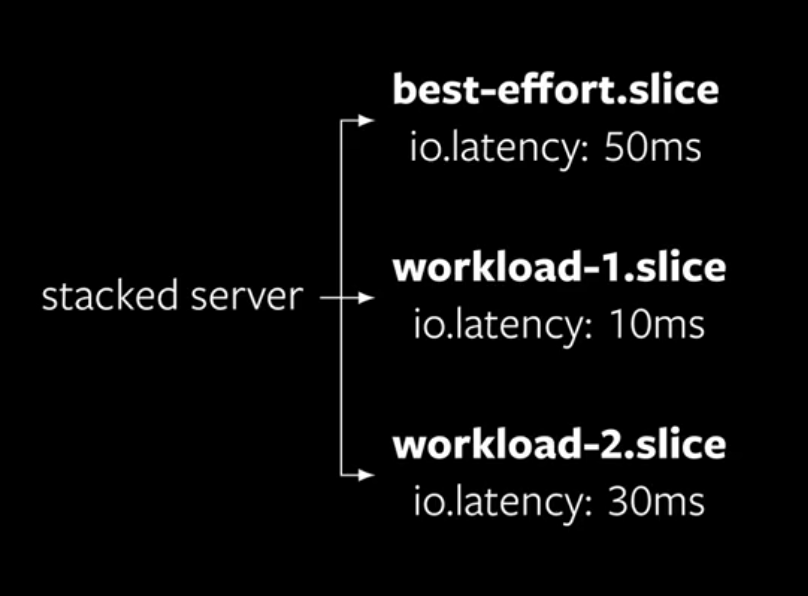 io.latencyis a better IO knob thanio.max, which can limit things too far on an uncontended system, or be made irrelevant based on the actual workloadio.latency: > Quality of service mechanism to guarantee a cgroup’s level of IO completion latency. Specifies the number of milliseconds a process can wait before IO from other processes is given to it. If the average completion latency is longer than the target set here, other processes are throttled to provide more IO, effectively prioritizing the job with the lowestio.latencysetting.- Only sibling cgroups compete for IO via