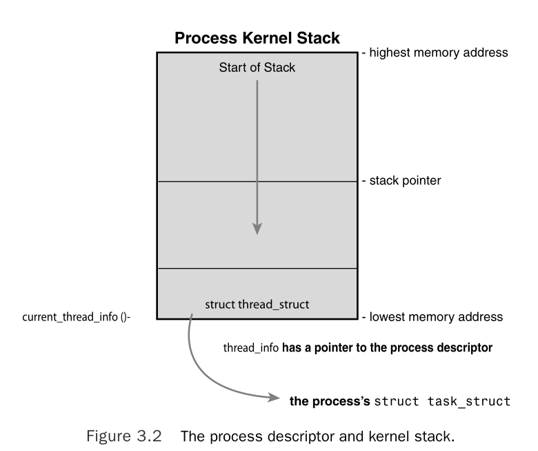 thread_infostruct that points to thetask_struct -