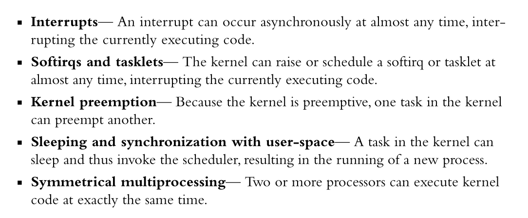 Processes can be preempted, even when[ executing in kernel-mode during a syscall