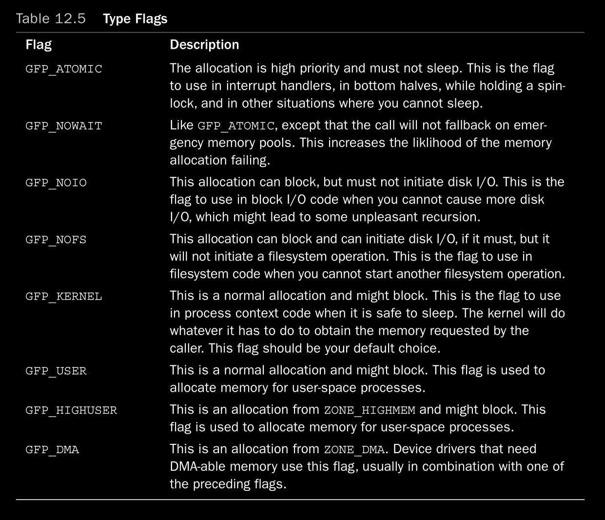 VM_SHAREDfor sharing (shared mapping if set, private mapping if not),VM_SHMfor shared memory (IPC)VM_IOfor areas that are mapping of a device’s IO spaceVM_SEQ_READto hint to the kernel that the process is going to perform sequential reads in the area (prefetching, etc)- Set this via the