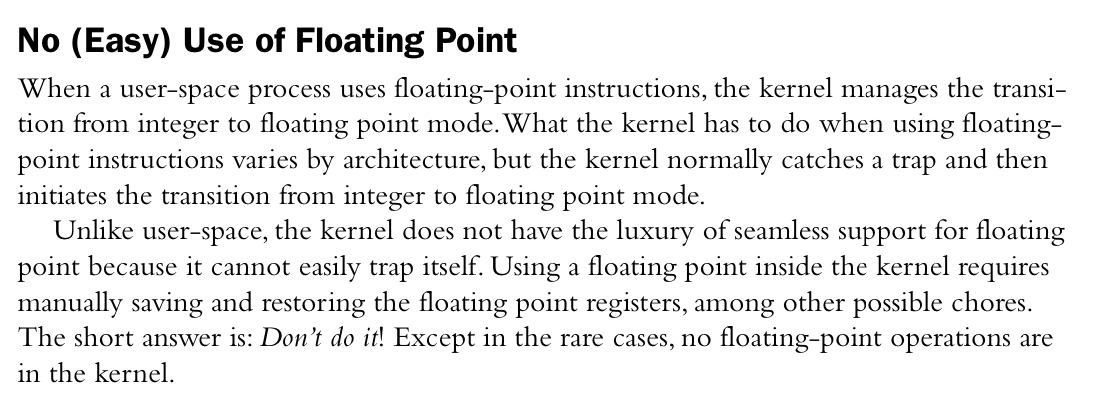 - Kernel code can’t access libc or use standard C headers