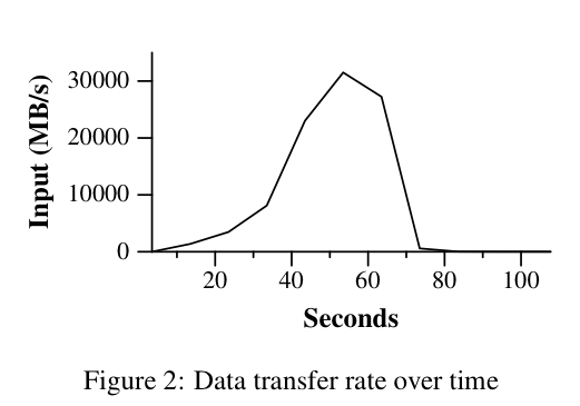 - 1800 machines, 2GHz Xeon, 4GB RAM (1-1.5GB used for other tasks on the same cluster), 2x160GB HD, gigabit ethernet