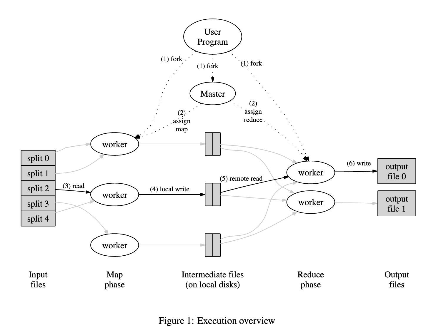 - Each worker can perform different tasks; there aren’t technically disjoint sets of “map workers” and “reduce workers”.