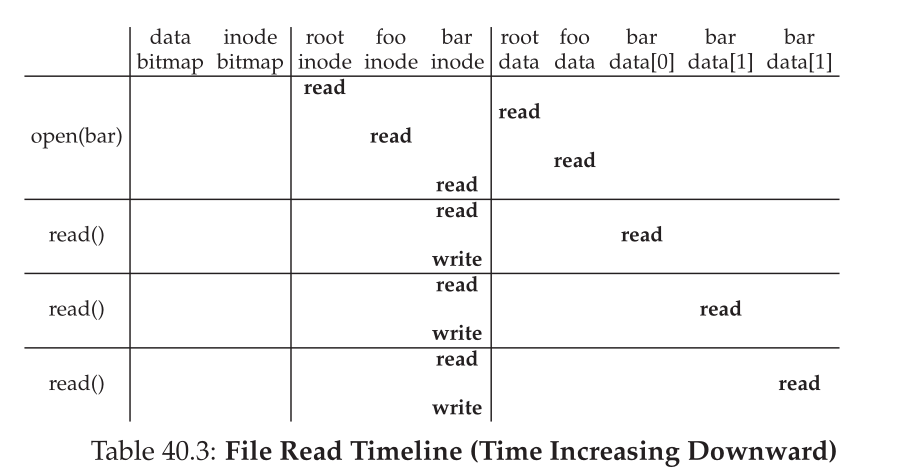 Creating a file uses even more IO, requiring reads/writes to the bitmap & updaing directory entries