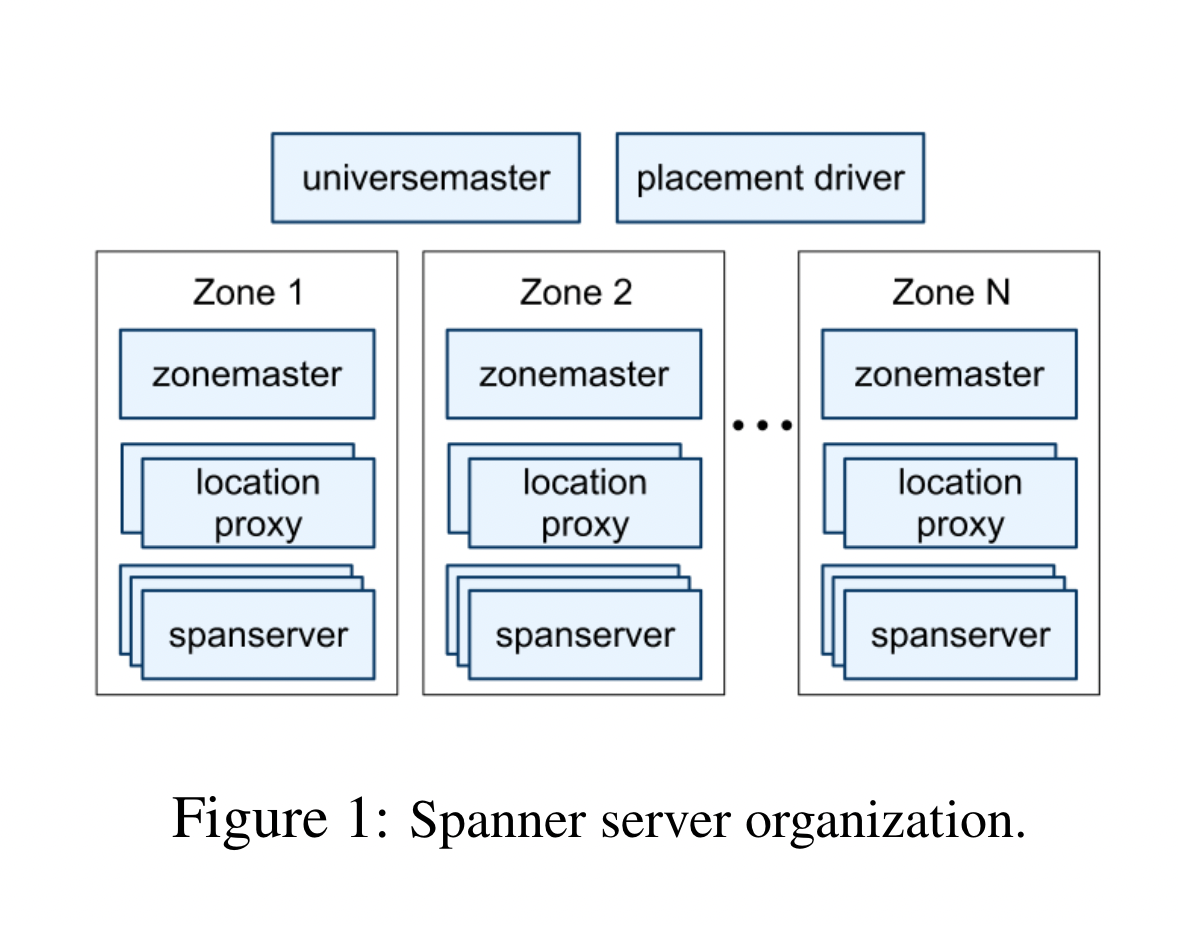 - Each zone has a zonemaster and many spanservers (that serve data)