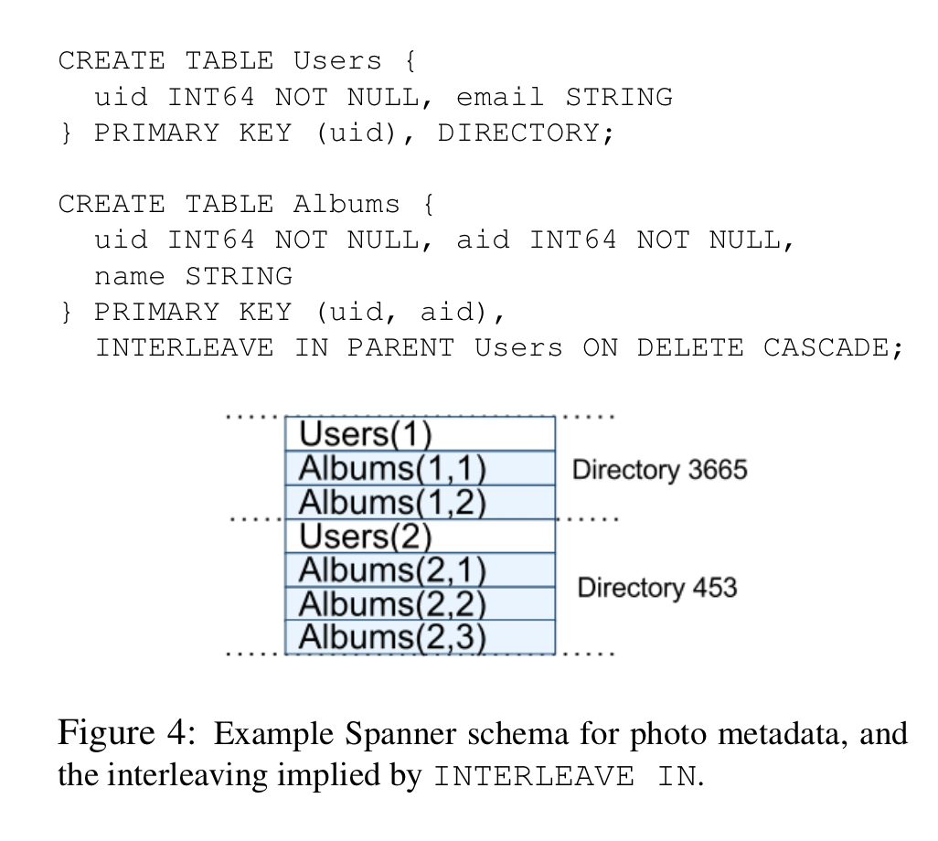 INTERLEAVE INto declare hierarchies: *Each row in a directory table with key K, together with all of the rows in descendant tables that start with K in lexicographic order, forms a directory