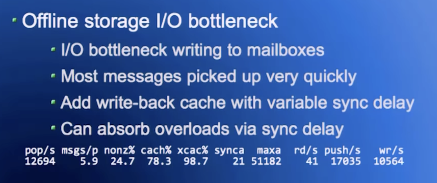 - Write-back cache for undelivered “mailboxes”