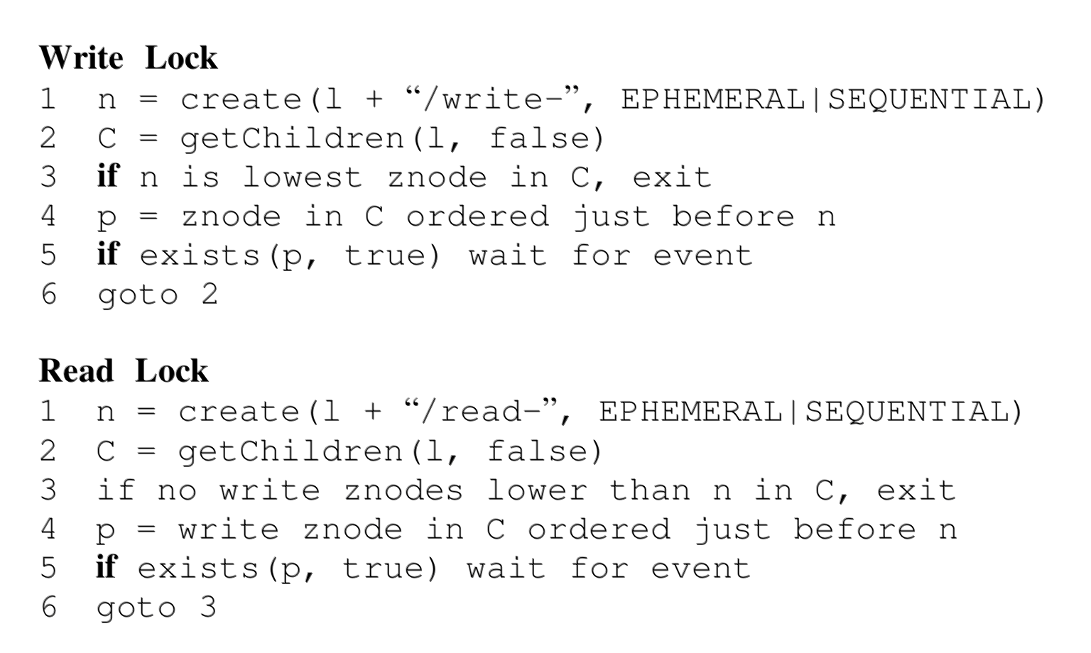 Examples of locking/etc. primitives that can be built up from ZK’s znode tree.